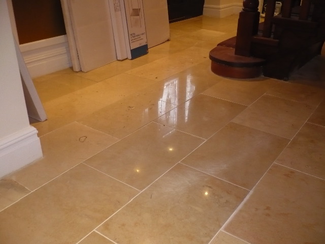 The polished marble floor above was first cleaned using Tile Doctor Pro-Clean to remove ingrained dirt from the stone and grout, the Marble was then re-polished using Tile Doctor Burnishing pads.